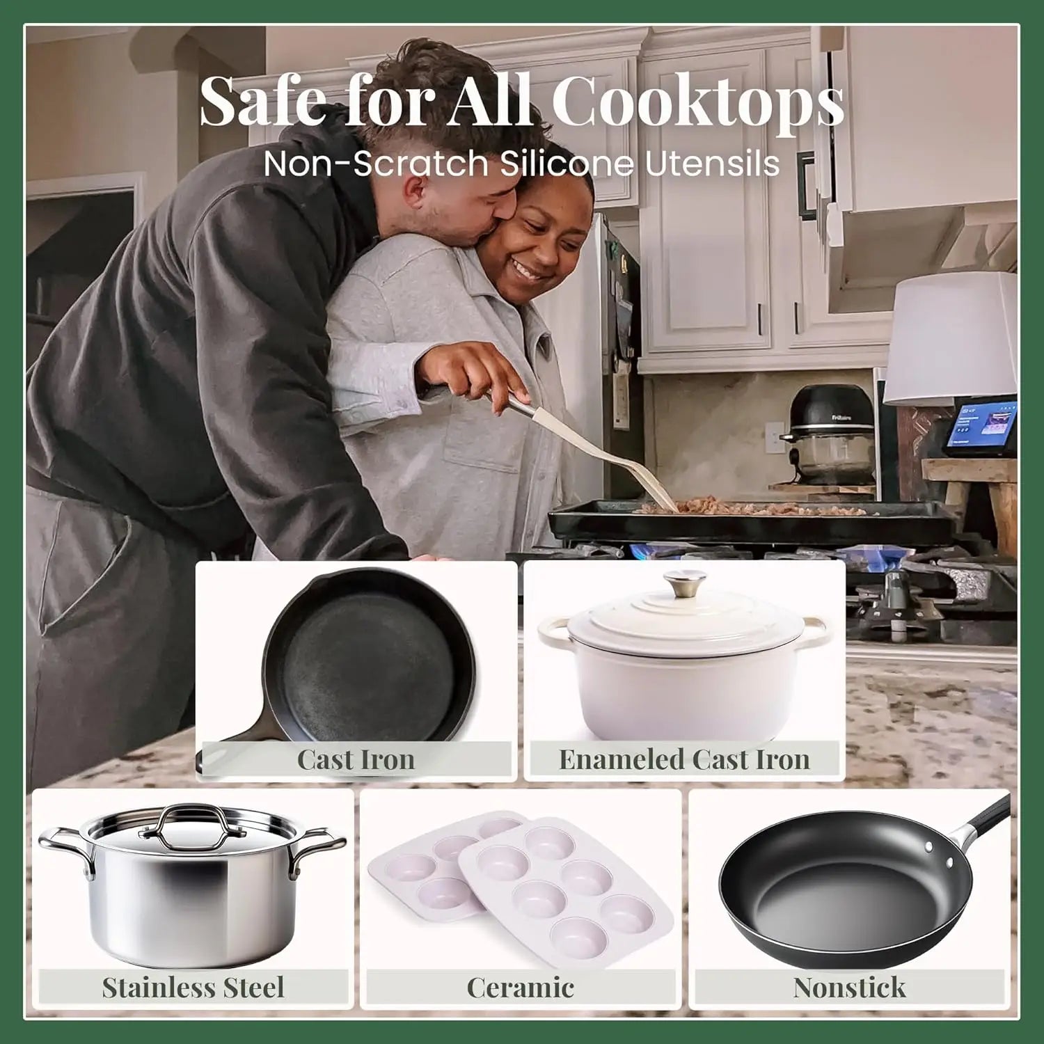 - Healthier Cooking: Made without harmful chemicals like PFAS, PFOA, PTFE, BPA, lead, or cadmium, this utensil set is a healthy and sustainable choice for your cooking needs.