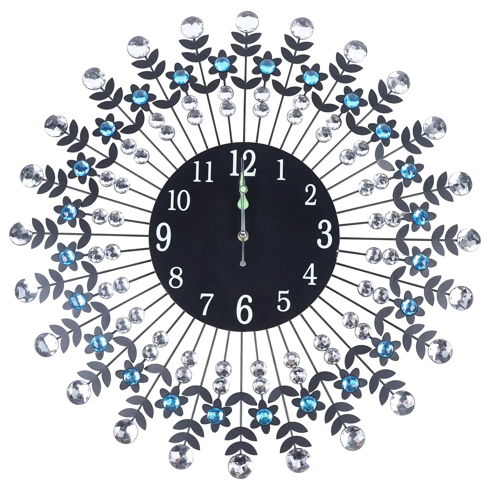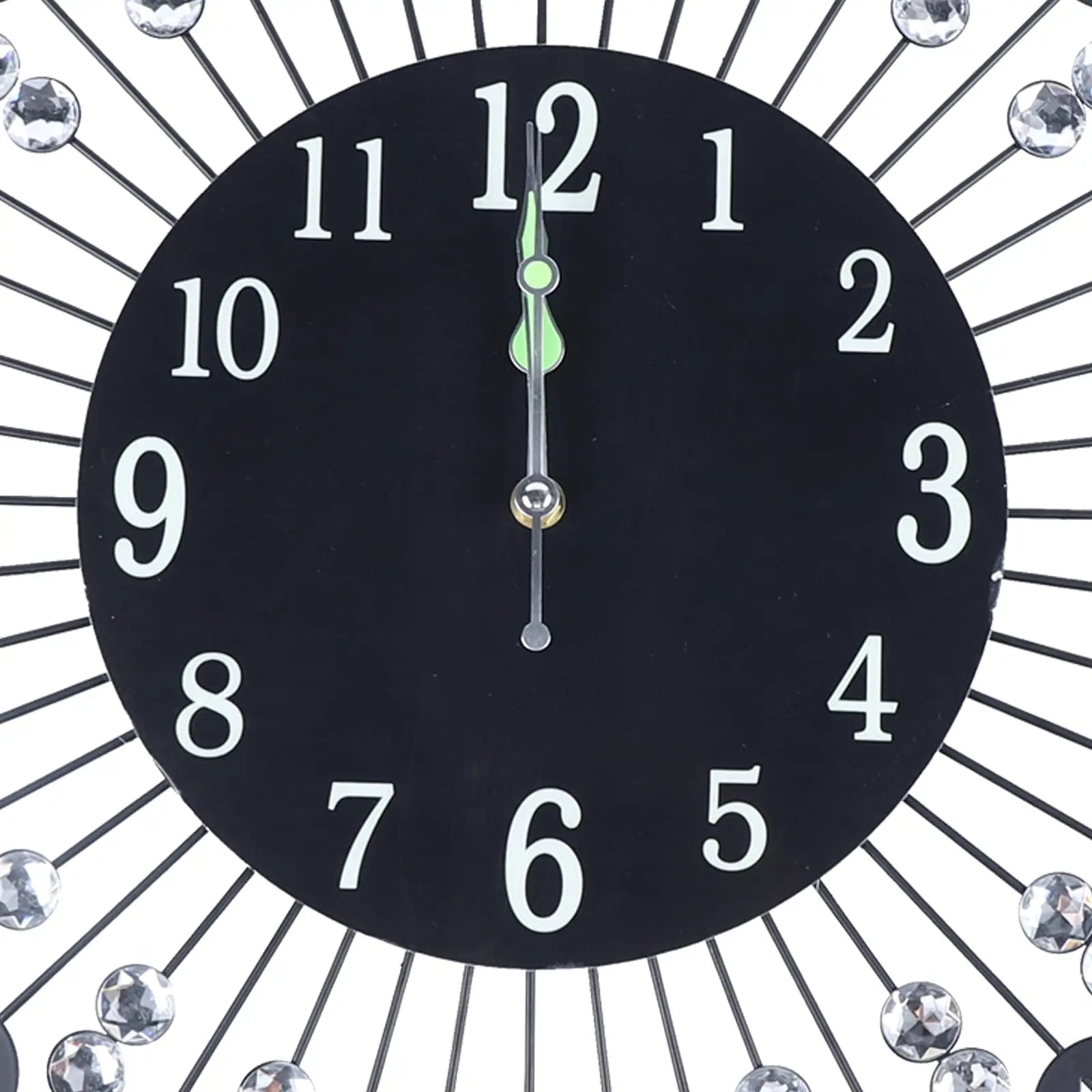 24'' Crystal Wall Clock, Large Décor Wall Clock Black Crystal Clock, Quartz Movement Wall Décor Clock W/Night Light