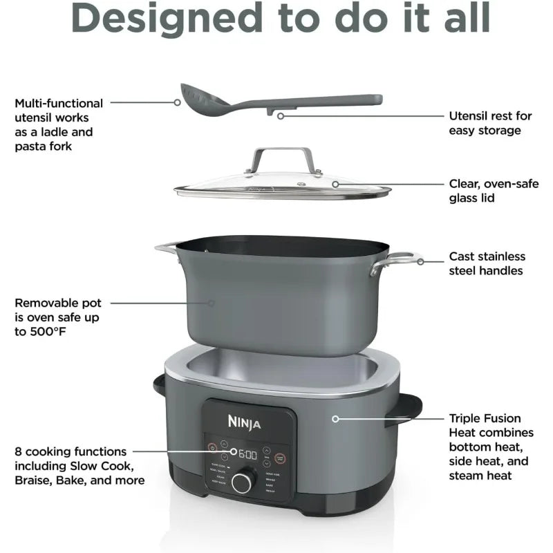 Ninja Foodi PossibleCooker PRO 8.5 Quart Multi-Cooker, with 8-in-1 Slow Cooker, Dutch Oven, Steamer & More, Glass Lid